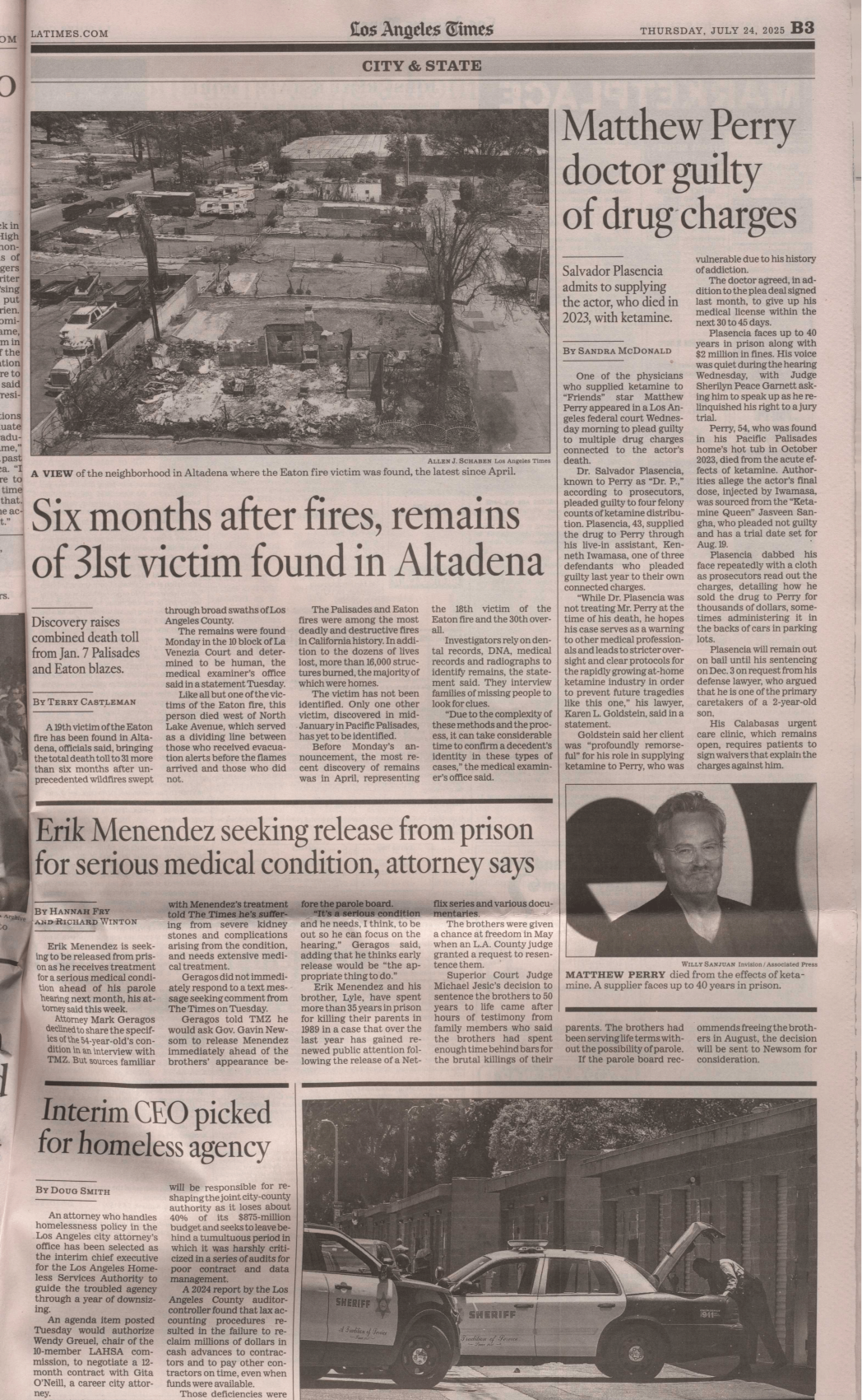 On January 7th, 2025, a series of wildfires started in the Southern California area, heavily affecting Los Angeles communities. The fires spread rapidly due to an abnormally dry year coupled with extreme winds raging at up to 100 miles per hour. Two of the fires, Eaton and Palisades, affected densely populated neighborhoods, spreading rapidly from structure to structure and combining to cause severe damage to over 16,000 homes and businesses. Released Friday, July 11, 2025