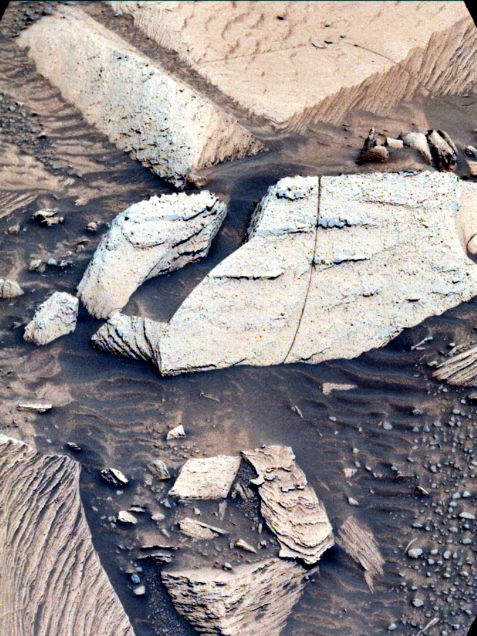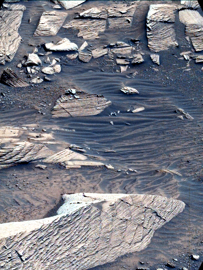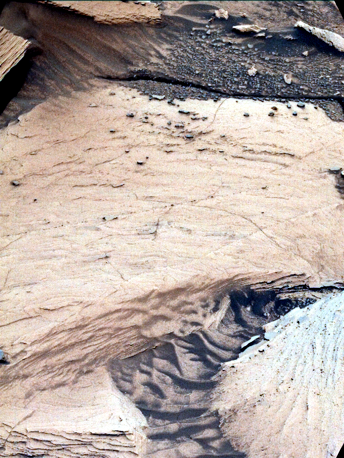 Most images acquired by MAHLI in daylight use the sun as an illumination source. However, in some cases, MAHLI’s two groups of white light LEDs and one group of longwave ultraviolet (UV) LEDs might be used to illuminate targets READMORE Credits: NASA/JPL-Caltech/MSSS