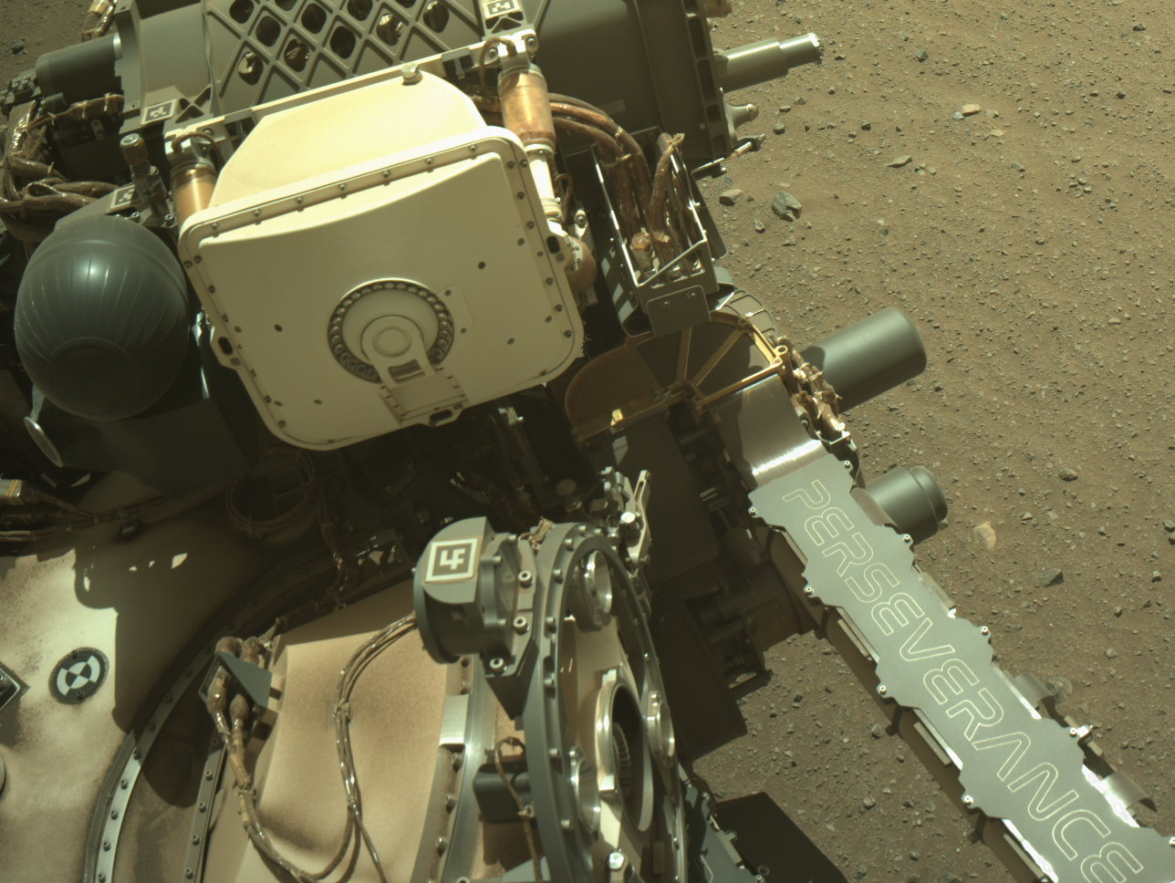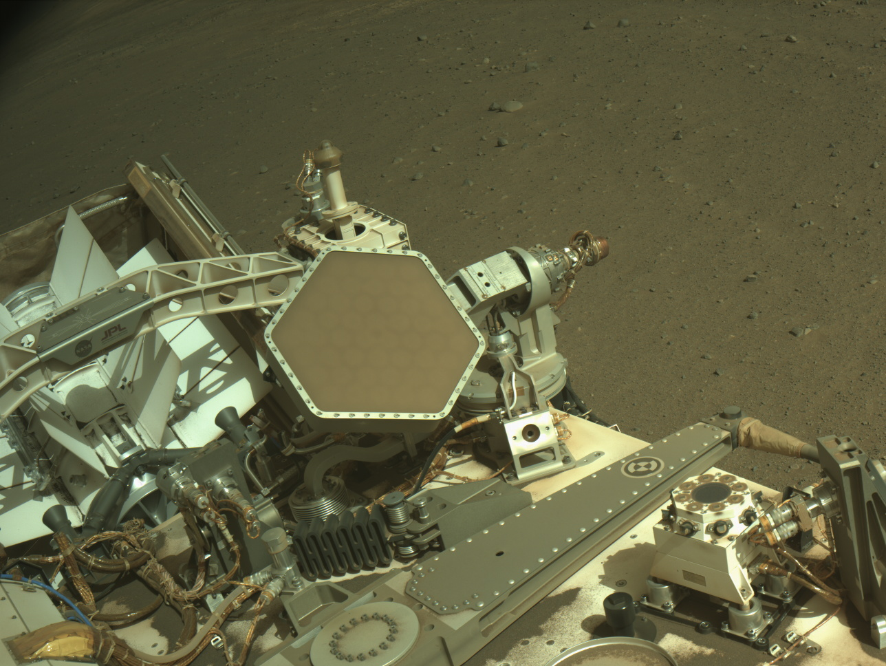 NASA’s Mars Perseverance rover acquired this image using its onboard Right Navigation Camera (Navcam). The camera is located high on the rover’s mast and aids in driving.